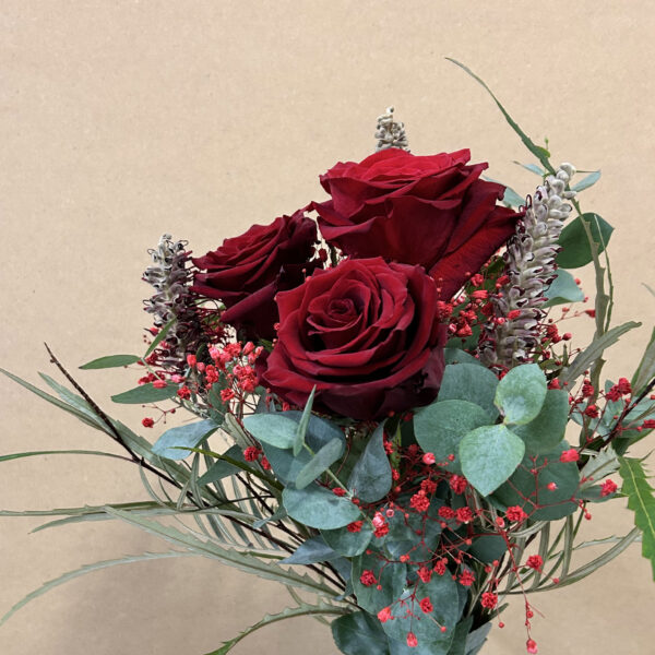 Confezione da 3 rose rosse.